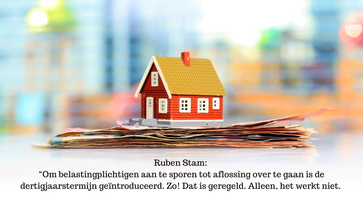 Voor hypotheken met een aflossingsinstrument – zoals de leven- en spaarhypotheek – gold (geldt) hetzelfde. Alleen voor ‘die vermaledijde aflossingsvrije hypotheken’, die bovendien in aantal schrikbarend toenamen, gold dit niet. Om belastingplichtigen aan te sporen tot aflossing over te gaan is de dertigjaarstermijn geïntroduceerd. Zo! Dat is geregeld. En weer door.