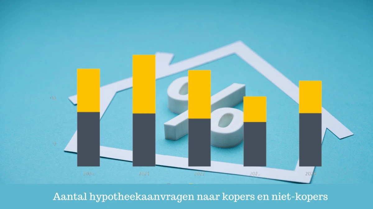 Gekeken naar het aantal hypotheekaanvragen in mei de afgelopen vijf jaar dan zien we een vergelijkbaar beeld met vorige maand, namelijk een forse groei ten opzichte van 2023 maar nog geen evenaring van het niveau van 2022 en eerder. Dit met name door een achterblijvende niet-kopersmarkt. De kopersmarkt blijft het goed doen en is met circa 23.500 aanvragen terug op het niveau van 2021. De periode vóór de sterke rentestijgingen. Het aantal aanvragen in de niet-kopersmarkt steeg met zo’n 3.000 aanvragen naar 14.000 waarvan circa driekwart een (onderhandse) verhoging of tweede hypotheek was.